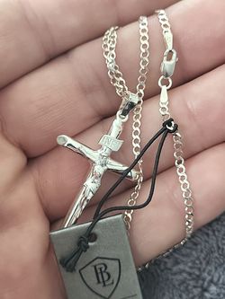 SilverI Crucifix Pendant a 3mm 24" Chain 925 Sterling beautiful set,$55Scranton, PA