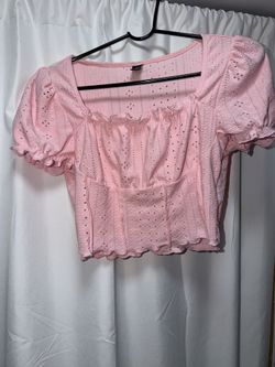 Pink Eyelet Lace Milkmaid Top // Coquette Puff Sleeve Crop$4Queens, NY