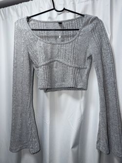 Grey Ribbed Flare Sleeve Crop Top // Sirencore Bell Sleeve$5Queens, NY