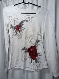 Y2K Graphic Long Sleeve Tee // Rose & Cross Tattoo Print$8Queens, NY