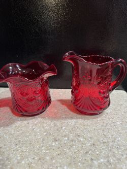 Vintage Fenton Ruby Red Glass GRAPES Creamer & Sugar$50Escondido, CA