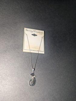 Sterling Silver Cat Pendant Necklace – Black & White CZ – 925 – New w/ Tag