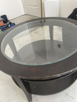 Round Wooden Table with Glass Center – Originally $150$50Houston, TX