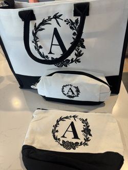 A Set Of 3 Embroidery Monogramed with Initial A Tote Bag for Women Teacher Mom Friend Personalized Gift for Birthday Beach Wedding Work$10Ontario, CA