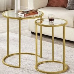 BRAND NEW-JUST ASSEMBLED-Round Nesting Stacking Side Table-Set of 2 -Gold Metal Frame & Tempered Glass Top $40Miami Beach, FL