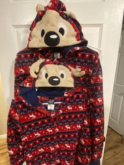 2 Christmas one piece pajamas with a reindeer hood. A kids large and an adult extra large.$30West Jordan, UT