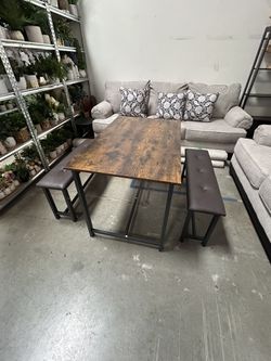 New Dining Table Set w/ 2 Bench Seats - Acacia Wood Finish$100Arcadia, CA