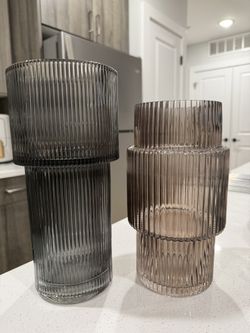 Set of 2 Modern Ribbed Glass Vases – Excellent Condition - Moving ASAP$40Newark, NJ