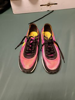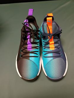 The shoes in the image are the Puma Uproar Hybrid Court ASG Fade sneakers. Featuring teal, purple, navy, and orange colorways. $60Baltimore, MD