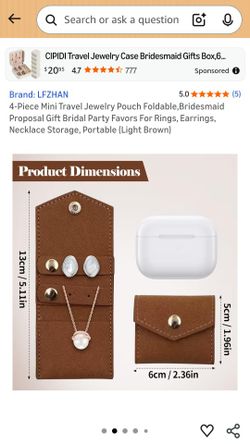 Mini Travel Jewelry Pouch Foldable, Bridesmaid Proposal Gift Bridal Party Favors (Light Brown)$2San Gabriel, CA