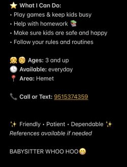Babysitter$10Hemet, CA