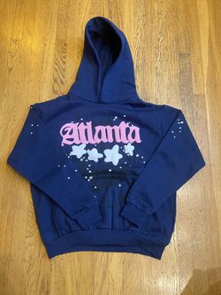 sp5der Atlanta Graphic Print Pullover Hoodie Navy Blue Pink White Size M Regular$60Berkeley, CA
