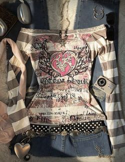 Glittered Blazed Striped Top Angel Wing Y2K$5Fontana, CA