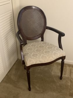 THE BOMBAY COMPANY CANE BACK ARM CHAIR. FEATURES A WHITE SEAT. BEAUTIFUL CHERRY$79Wellington, FL