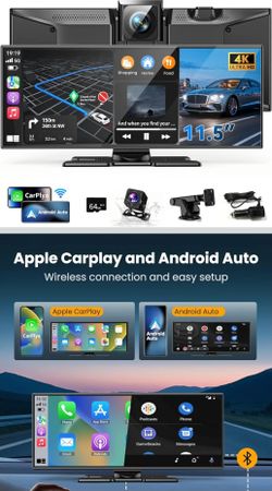 11.5" Wireless Carplay Screen for Car, Portable Apple Carplay & Android Auto Touch Screen, 4K Dash Cam$110Itasca, IL