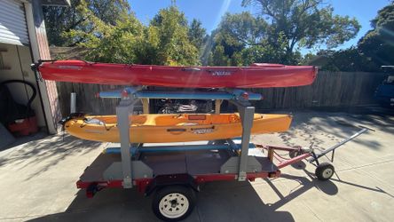 Hobie Mirage Revolution 13, Hobie Mirage Revolution 11, Pedal Kayaks, Trailer, + Extra Stuff $4,100Orange, CA