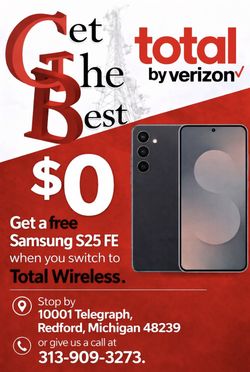 Free Samsung S25Fe$0Redford Charter Township, MI