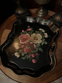 1980’s Black Hand Painted Floral Toleware Serving Tray$60Trout Valley, IL