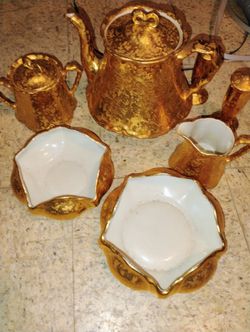 Antique 24k Gold And Porcelain Tea Set Initials PW $60Parma Heights, OH