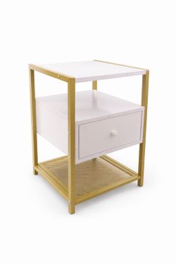 RAAMZO 3-Tier White & Gold Nightstand Side End Table with Lower Mesh Shelf & Drawer$45Menifee, CA