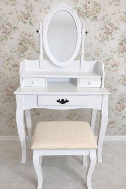 New White Makeup Vanity with Mirror & Stool – Elegant Style$85Menifee, CA