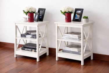 Set of 2 RAAMZO White Finish Wooden X-Design Chair Side End Table with 3-tier Shelf $99Menifee, CA
