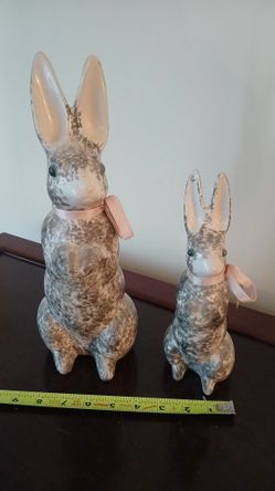 ceramic rabbit figurines with pink ribbons made in Portugal. $35High Point, NC