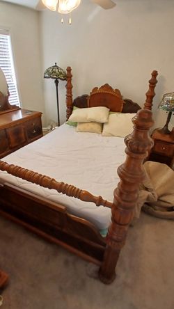 antique wooden four-poster bed with a carved headboard and turned posts$500High Point, NC