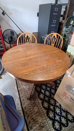 antique mission-style round oak pedestal dining table with 2 matching chairs$50High Point, NC