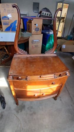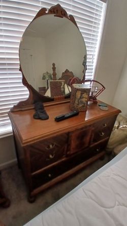 antique 1930s Art Deco waterfall dresser with a mirror$800High Point, NC