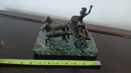 vintage Greek or Roman-style warrior chariot figurine made of metal or brass, mounted on marble$75High Point, NC