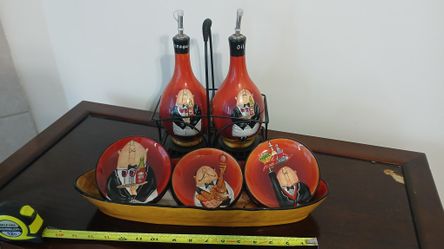 Discontinued International "Dinner is Served" oil and vinegar cruet set with dipping plates$60High Point, NC
