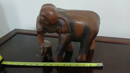 hand-carved wooden sculpture depicting a mother elephant and her calf. $30High Point, NC