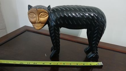 hand-carved wooden cat sculpture with a black finish and a gilded face$50High Point, NC