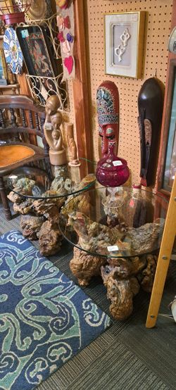 Two 1970s Burlwood Glass Top Tables Priced Per Ea.$300Tempe, AZ