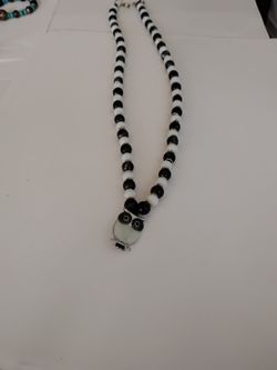 Handmade Owl Pendant Necklace – Black & White Beads”$20Compton, CA