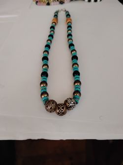 Boho Handmade Beaded Necklace – Turquoise & Bronze”$35Lynwood, CA