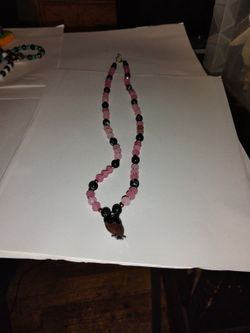 Pink And Black Bead Necklace With Brown Owl Pendant $10Compton, CA