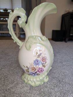 Vintage 1985 Victorian Style Iridescent 17" Porcelain Green Floral Vase/Pitcher$20Green Bay, WI