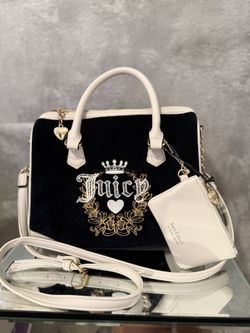 Juicy Couture Velour Heritage Satchel bag in black liquorice with a cream/angel trim $50Medley, FL