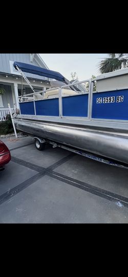 Blue Pontoon Boat with Trailer – Ready for the Water$5,500Lancaster, SC