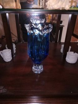Murano-Style Vintage Leave Cobalt Blue Crystal Swirl Trumpet Statement Vase 12"$100Lodi, CA