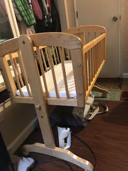 Swinging wooden crib$65Riverside, CA
