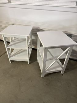 New Set of 2 RAAMZO White Finish Wooden X-Design Chair Side End Table with 3-tier Shelf $90Menifee, CA