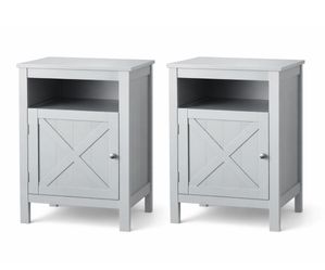 New RAAMZO Set of 2 Grey Finish Nightstand Side End Table with Barn Door Cabinet and Open Shelf 26" H$85Menifee, CA