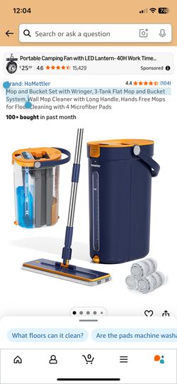 Mop and Bucket Set with Wringer, 3-Tank Flat Mop and Bucket System, $30Monrovia, CA