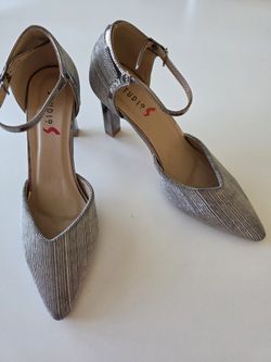 Studio S Silver Metallic Pointed Toe Ankle Strap Block Heels Sz 38 7.5 or 8$25Edgewood, WA
