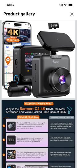 Sarmert C2 4K Dual Dash Cam Front and Rear - Built-in GPS and 5G WiFi$75Los Angeles, CA