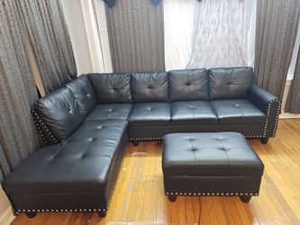 Sold3 Piece Black Faux Leather Sectional Sofa with Ottoman $350Skokie, IL