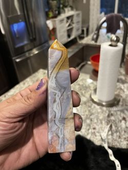 Stunning 4.75" Rainbow Chalcedony Tower with Dazzling Druzy Spots and Mesmerizing Banding – Unique Crystal Display Piece!$44Thornton, CO